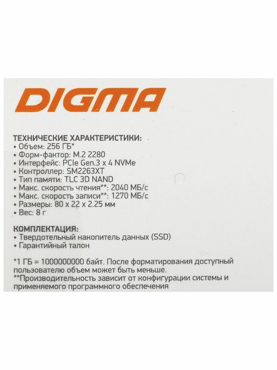 Твердотельный накопитель DIGMA 256 ГБ M.2 DGSM3256GS33T