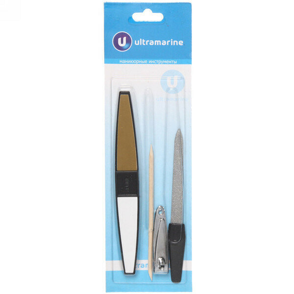 Купить Маникюрный набор ULTRAMARINE 4 предмета, пилка полировка 2 шт, кусачки, апельсиновая палочка