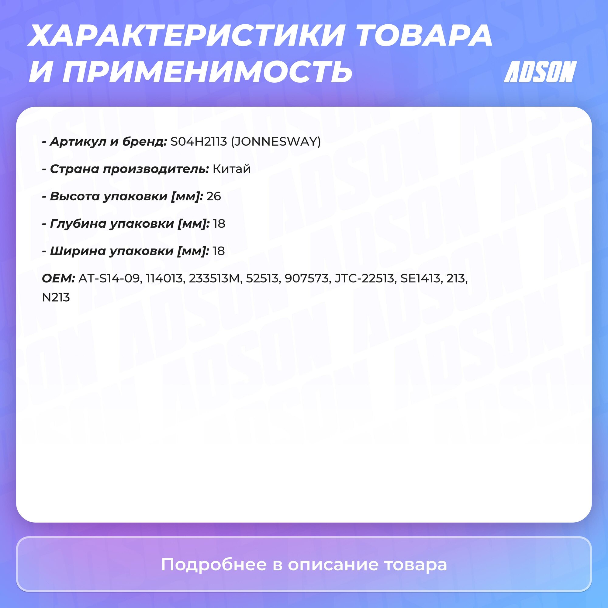 Ниже Вы можете прочитать отзывы на Торцевая головка 1 / 4DR, 13мм JONNESWAY S04H2113, ознакомится с подробными характеристиками, посмотреть интересные обзоры и фотографии на Торцевая головка 1 / 4DR, 13мм JONNESWAY S04H2113.