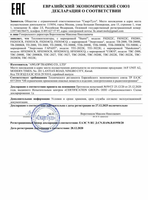 Тепловентилятор СОЮЗ ТВC-2000КВ