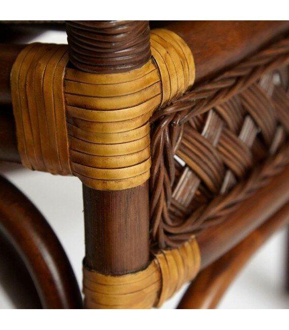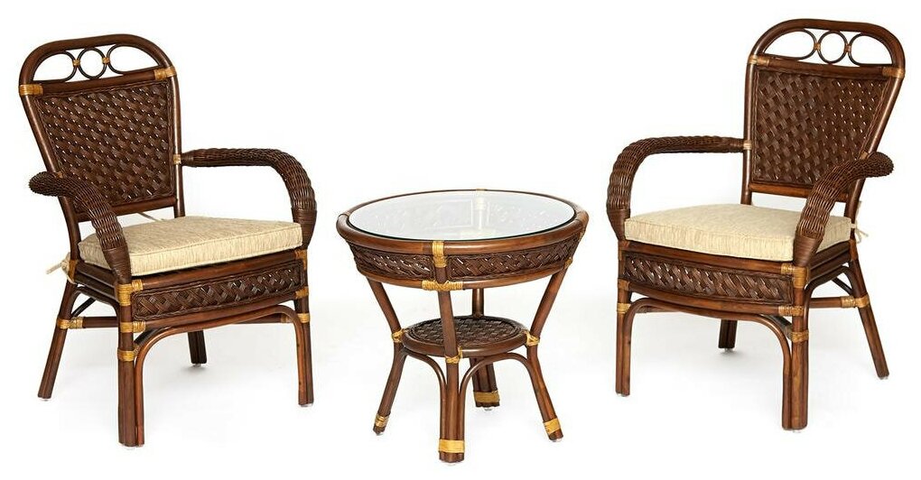 Террасный комплект TETCHAIR ANDREA (стол кофейный со стеклом + 2 кресла + подушки) ротанг (античный орех)