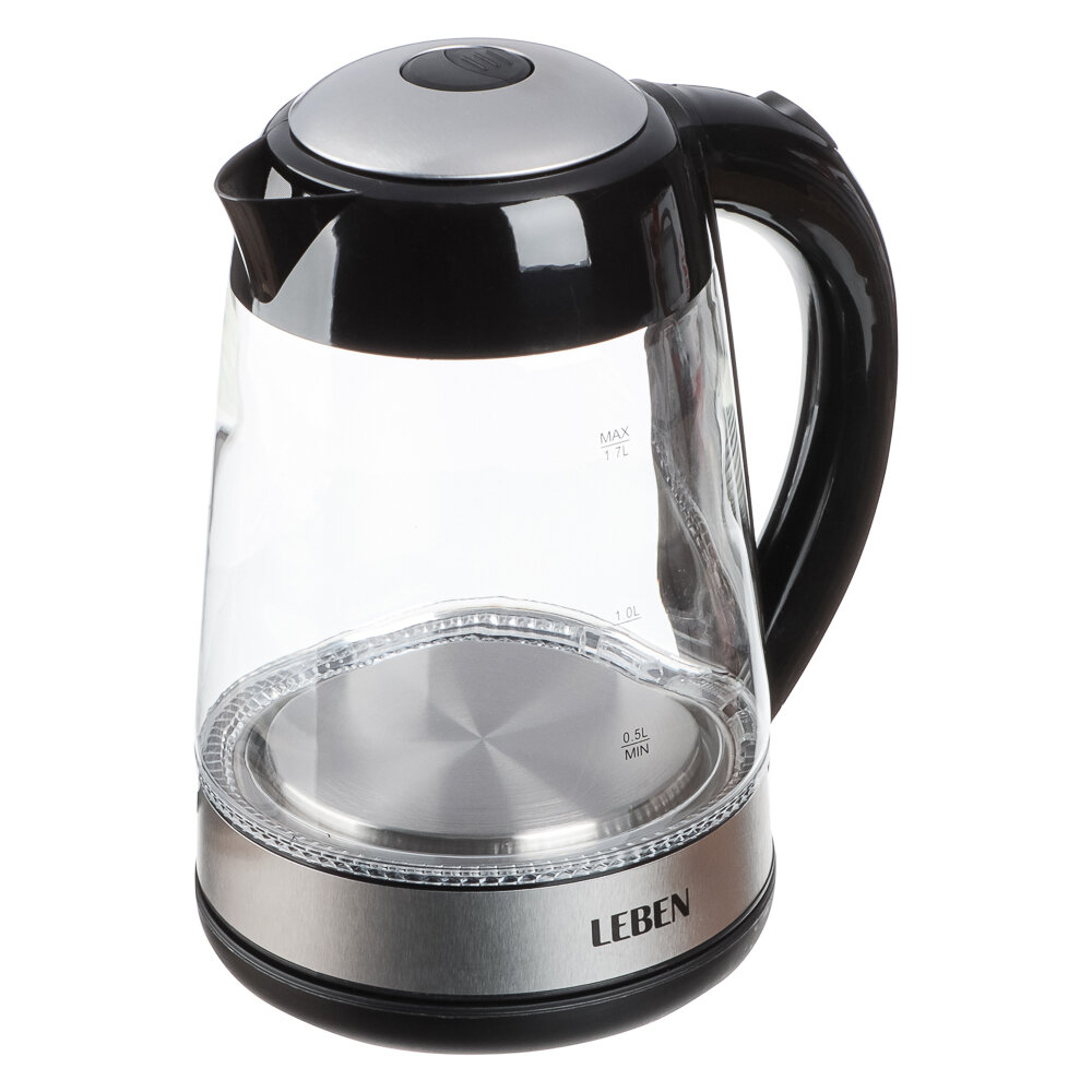 Чайник электрисеский LEBEN 291-013 1,7л, 1850 Вт, хром/черный
