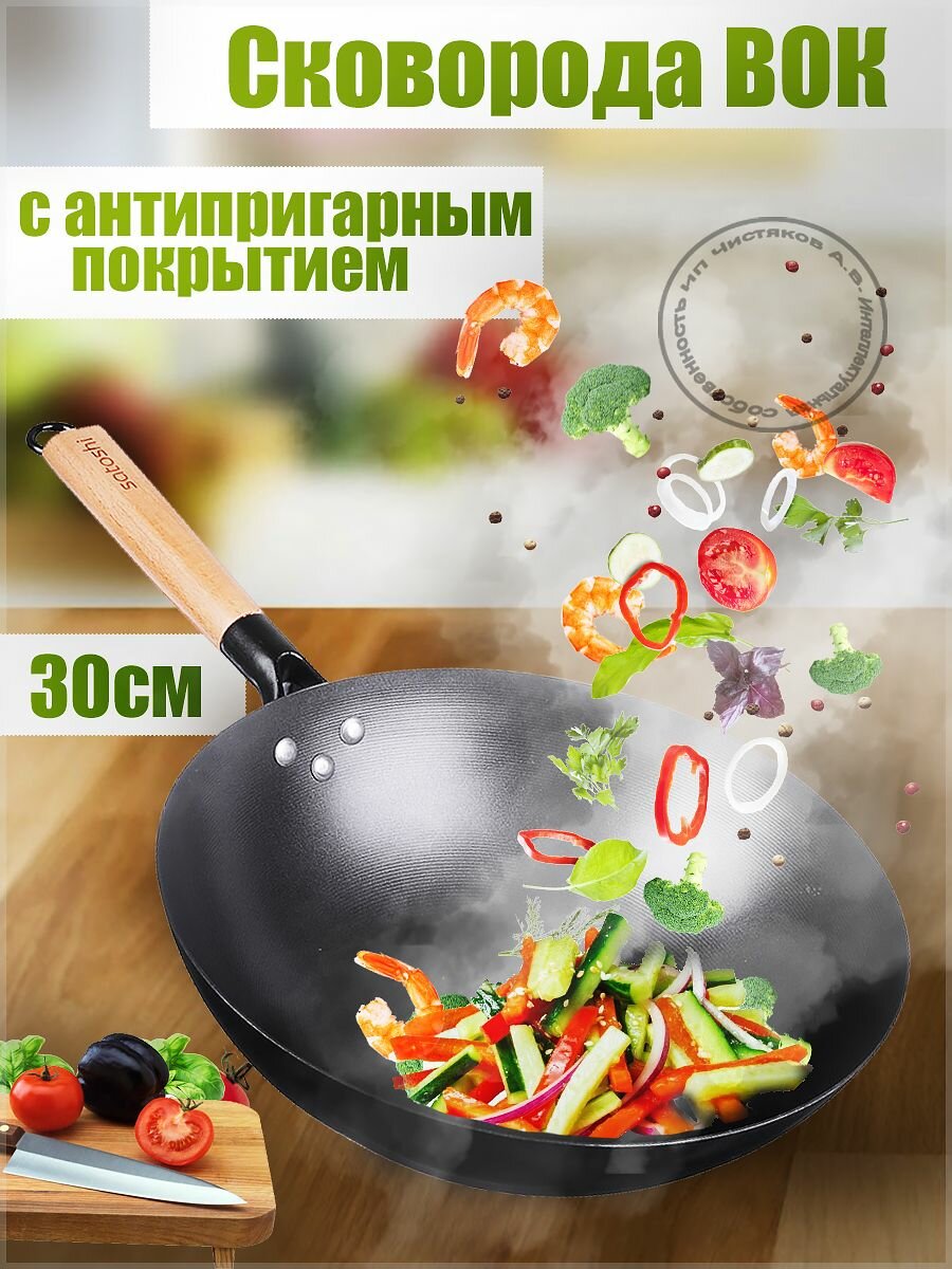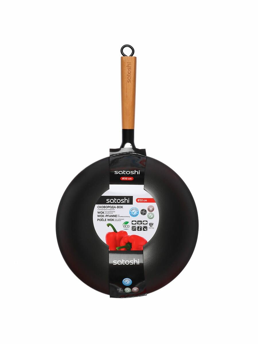 Сковорода вок 30 см Satoshi с антипригарным покрытием без крышки интересное: