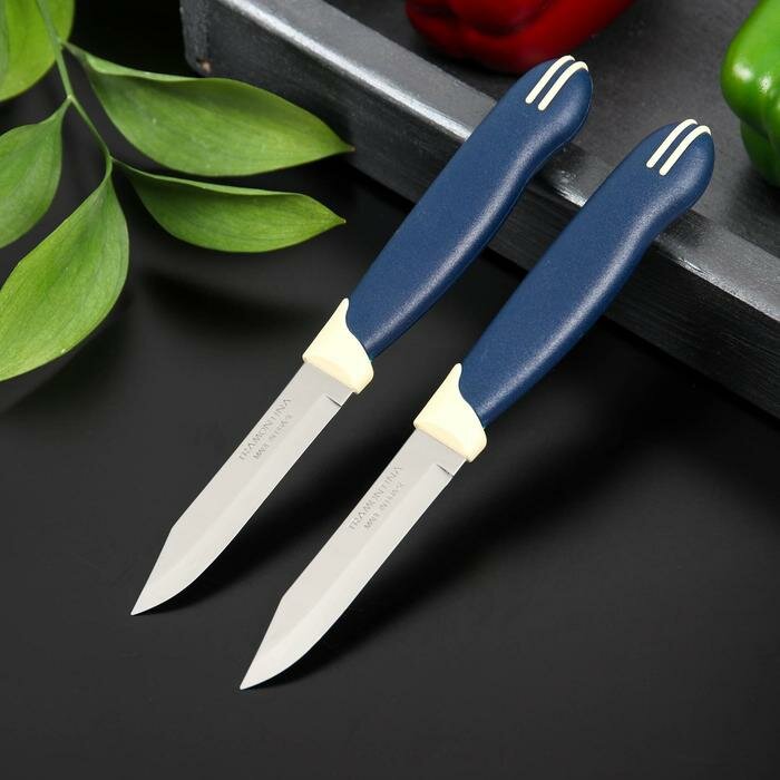 Купить Нож кухонный овощной 8 см Tramontina Multicolor 2 шт на блистере, маленький нож для чистки овощей, 23511/213