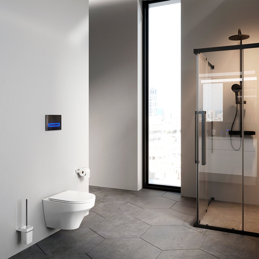 Инсталляция Am.Pm Inspire, IS49051.501700 с безободковым унитазом Inspire FlashClean, клавиша Pro L глянцевый хром, крышка микролифт