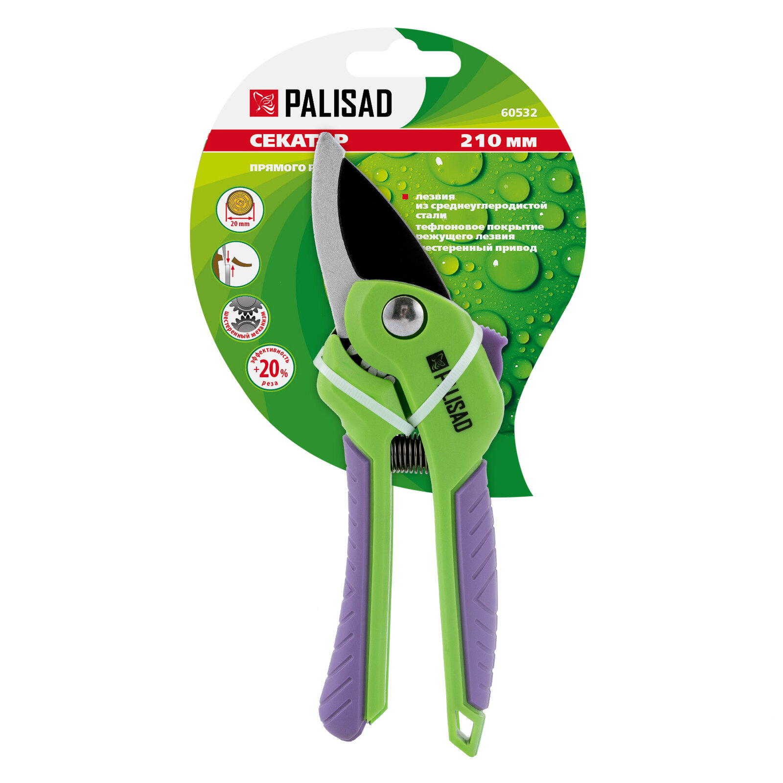 Секатор Прямого Реза, 210 Мм, Шестеренный Привод, Двухкомпонентные Рукоятки// Palisad Palisad арт. 60532