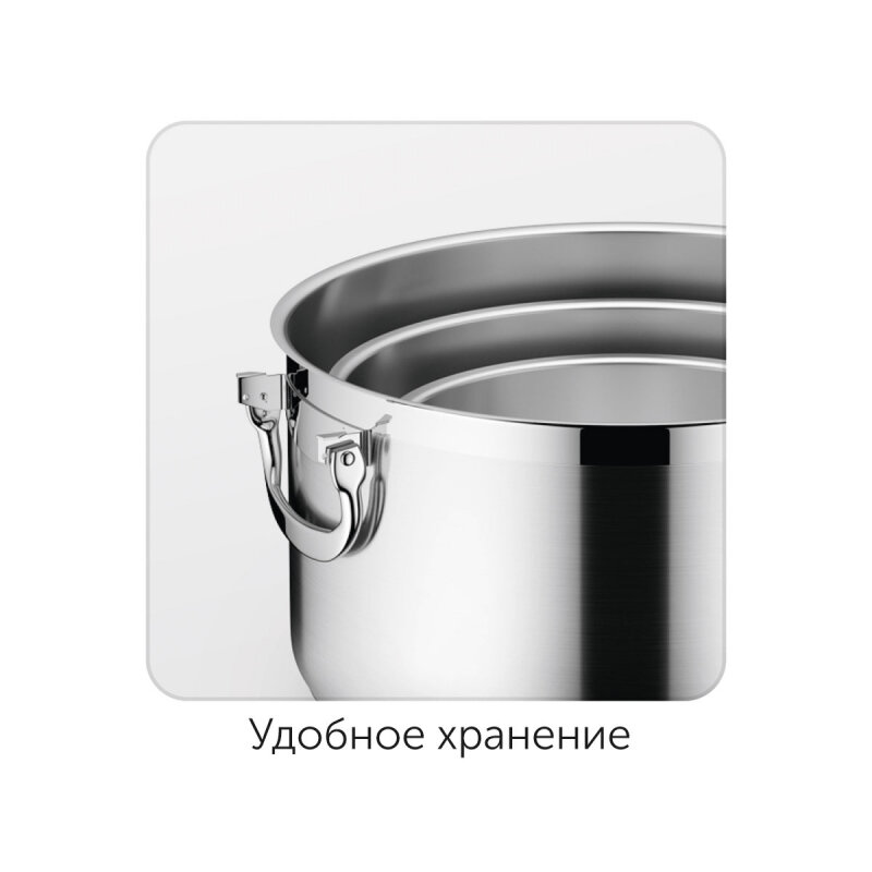 | Отзыв: | Шикарный набор кастрюль. Складывается как матрёшка,благодаря складным ручкам, тем самым занимает минимальное пространство. Удобная крышка, не нужно использовать дуршлаг. Покупкой очень довольна. Пр-во Чехия |
