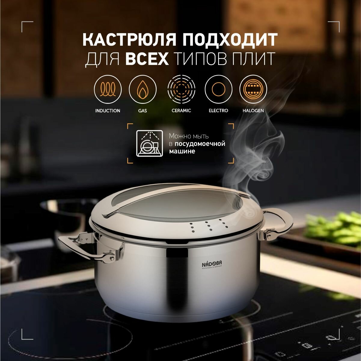 Набор кастрюль Nadoba Tesla со стеклянными крышками 6 предметов (727818)