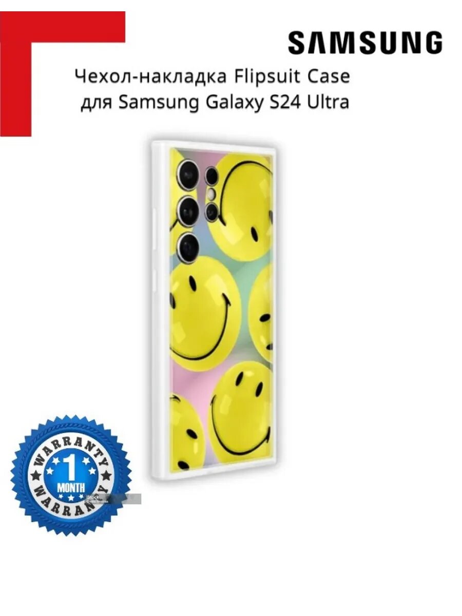 Чехол-накладка Samsung Flipsuit Case S24 Ultra желтый (принт Smiley)