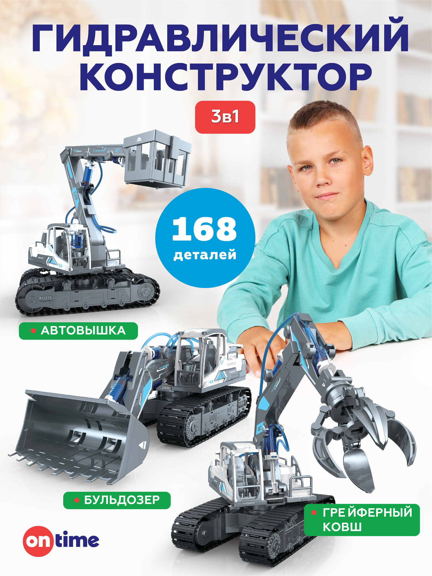 Купить Гидравлический конструктор ON TIME 3в1: бульдозер, грейферный ковш, автовышка