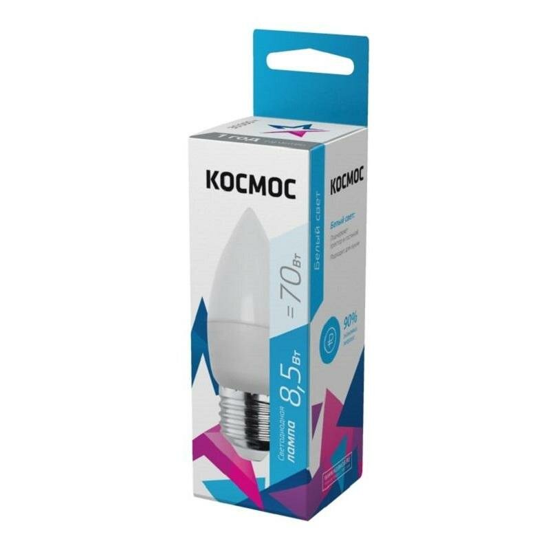 Купить Светодиодная лампа Космос, 8.5 Вт, E27, 4500 K, свеча, LED8.5wCNE2745, нейтральный белый