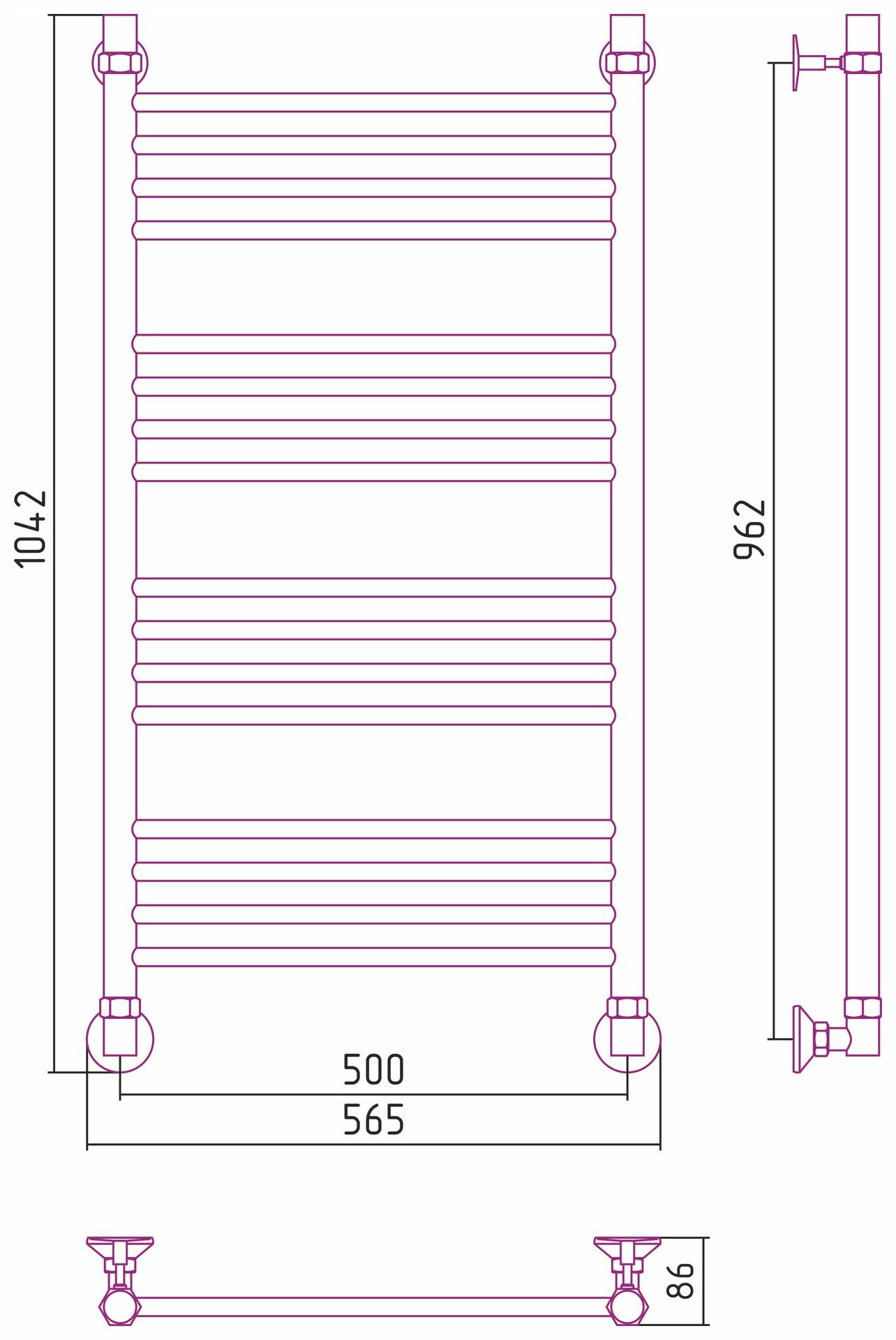 Полотенцесушитель водяной стилье Аксиома-10 1000х500