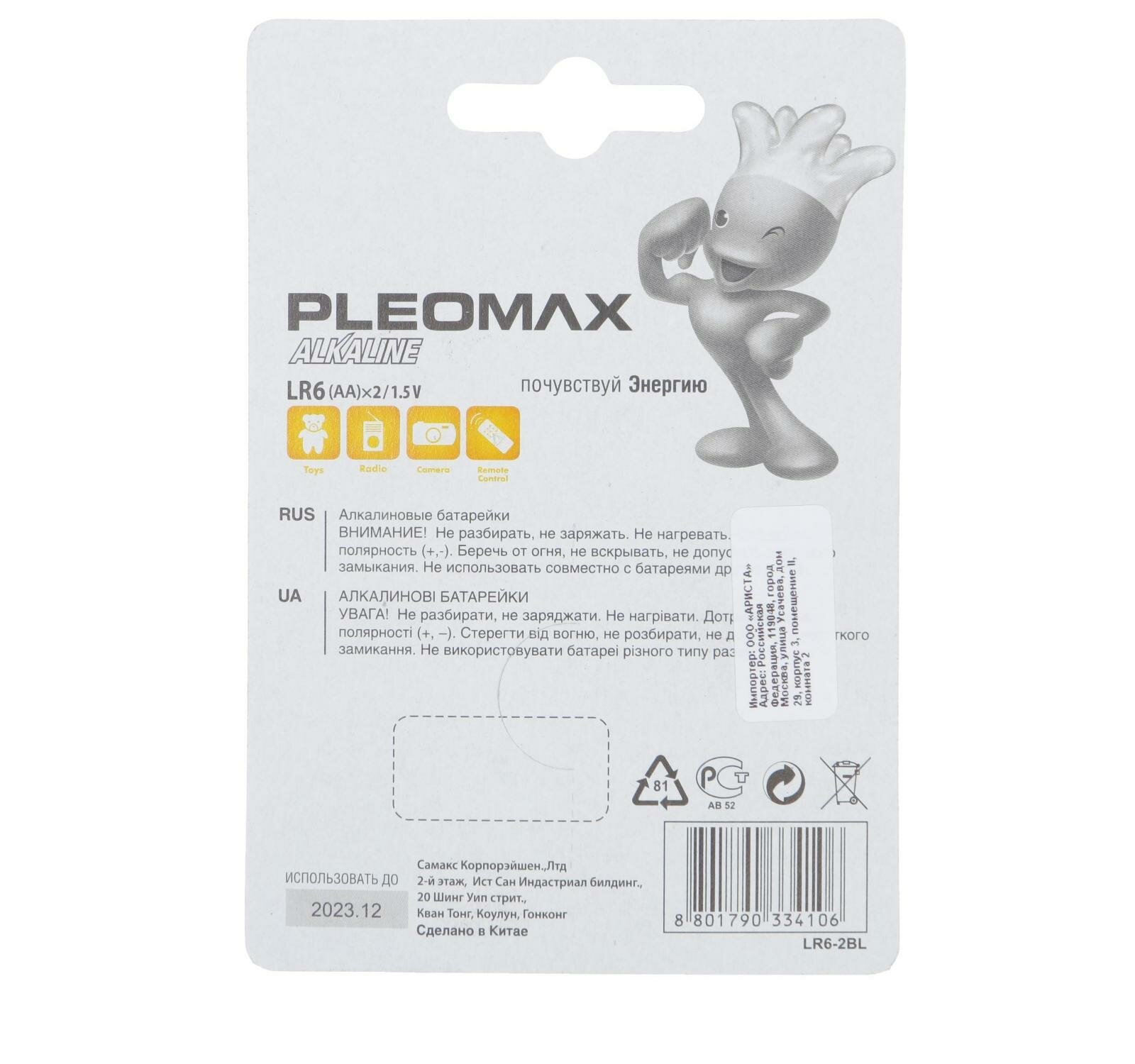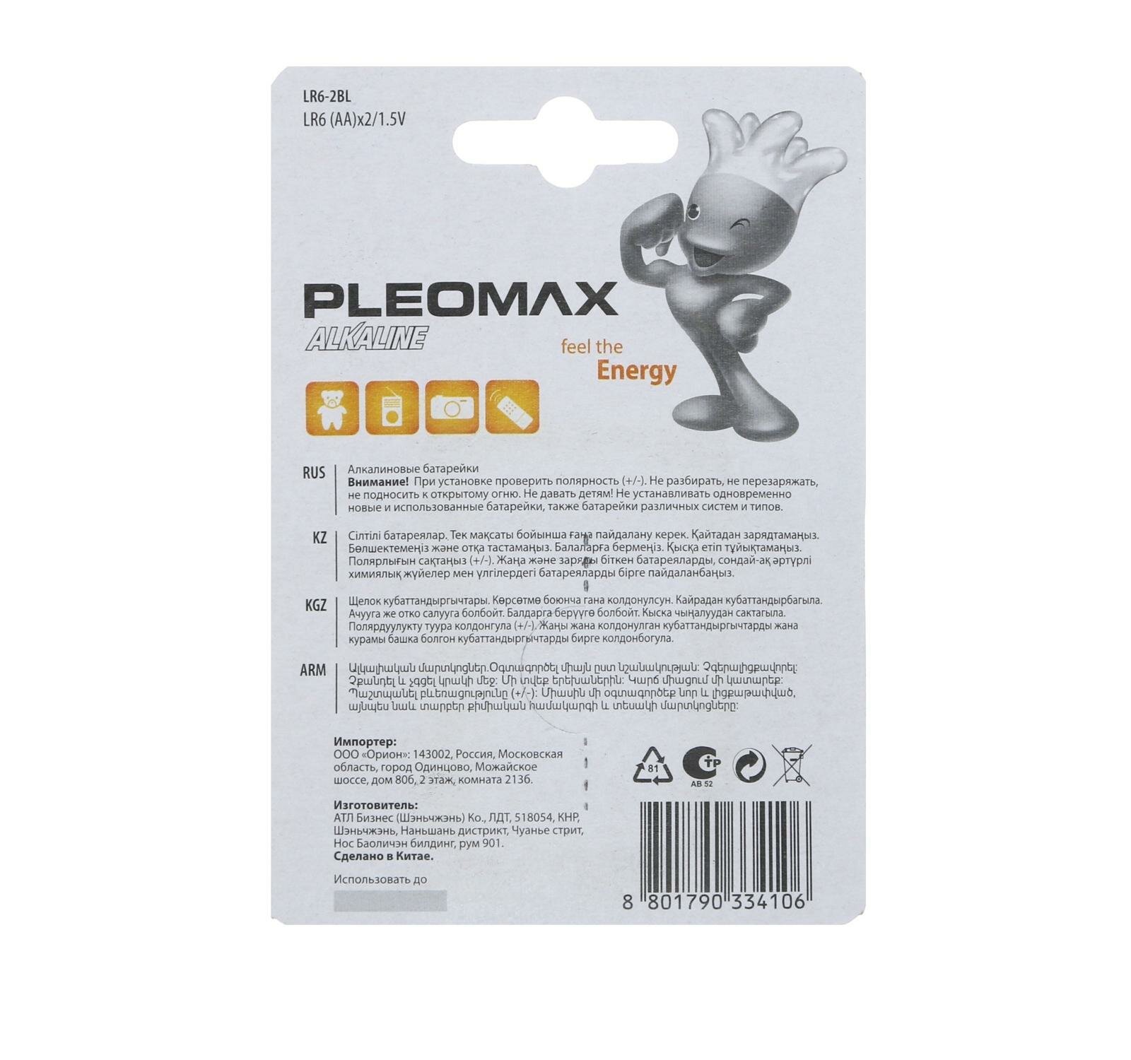 Батарейка алкалиновая Pleomax, AA, LR6-2BL, 1.5В, блистер, 2 шт., 2 штуки интересное: