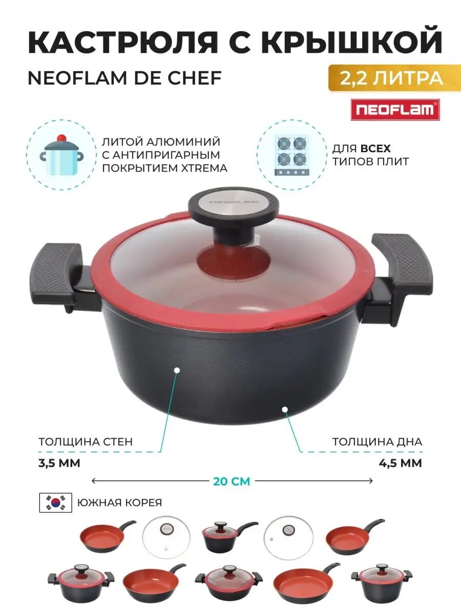 Кастрюля со стеклянной крышкой Neoflam De Chef 2,2 л, 20 см (индукция)