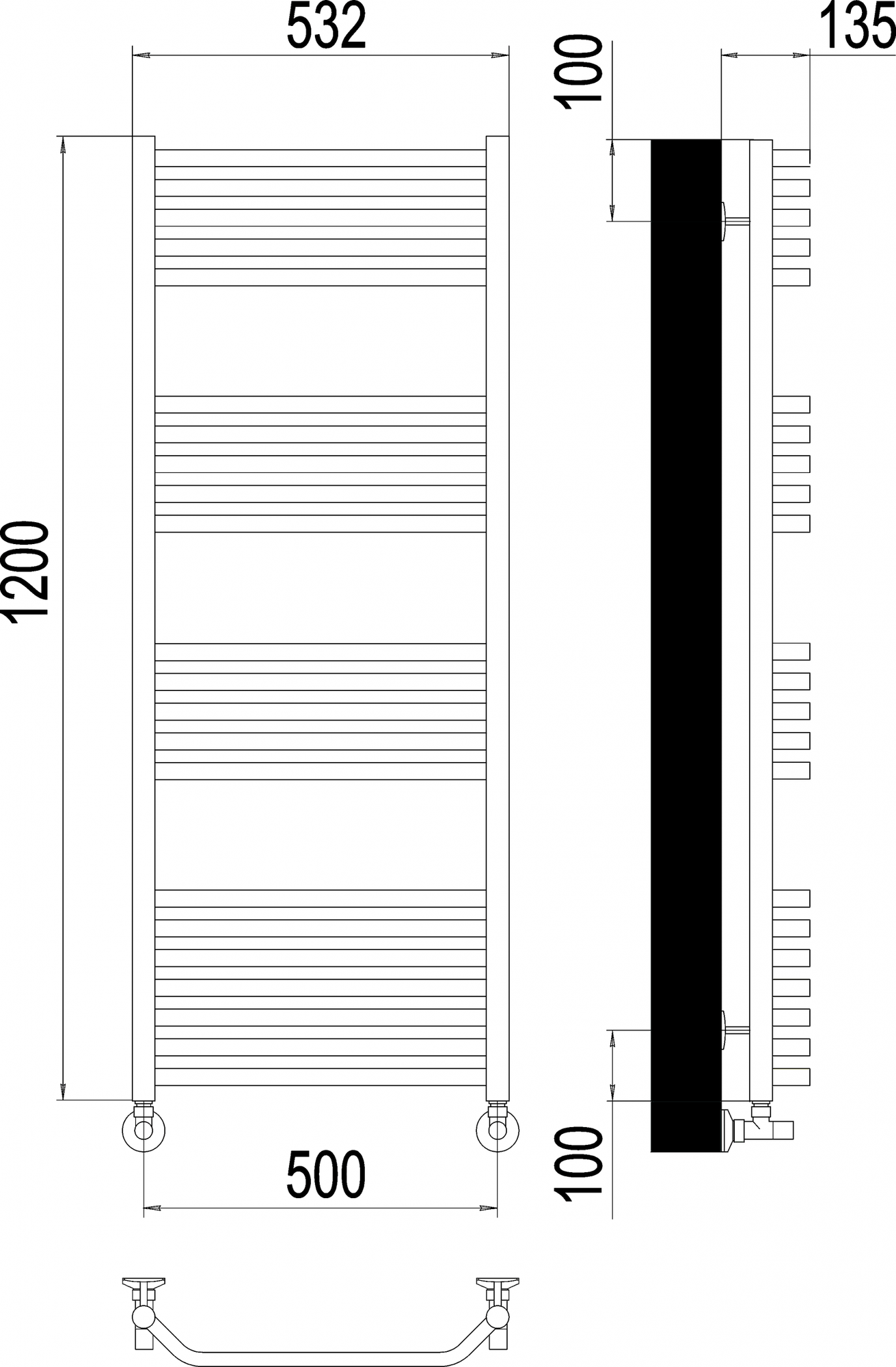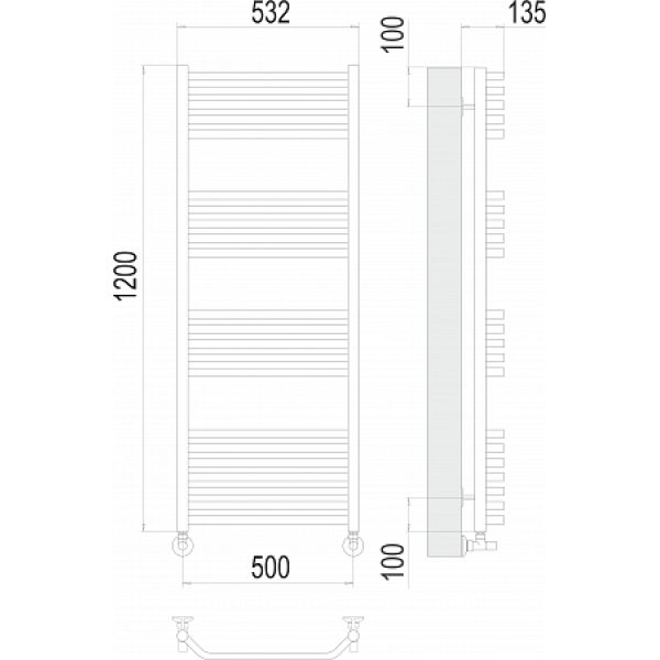 Terminus Полотенцесушитель водяной Виктория П22 500х1200, ширина 53.2 см, высота 120 см, 4670078529558