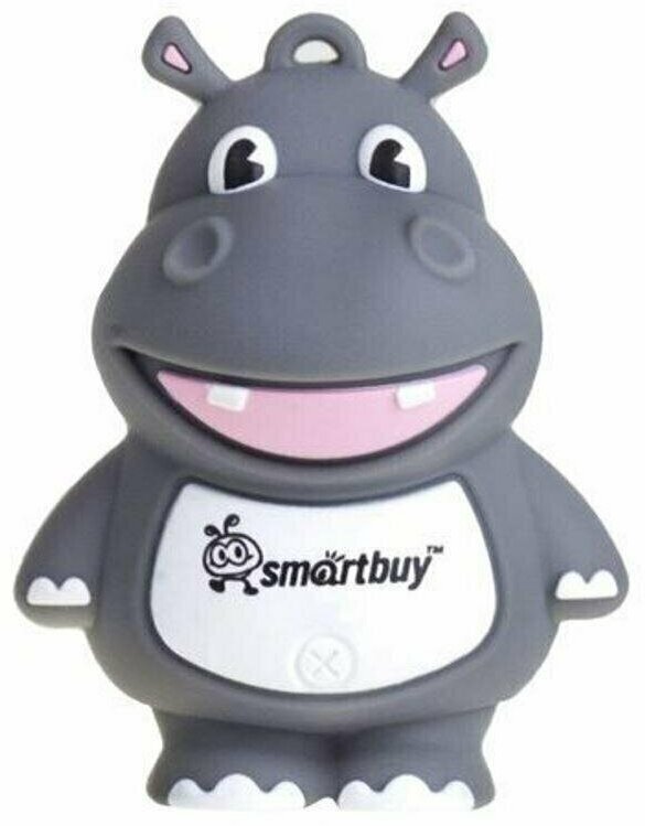 Флешка Smartbuy Wild series "Гиппопотам", 32 Гб, USB2.0, чт до 25Мб/с, зап до 15Мб/с, серая