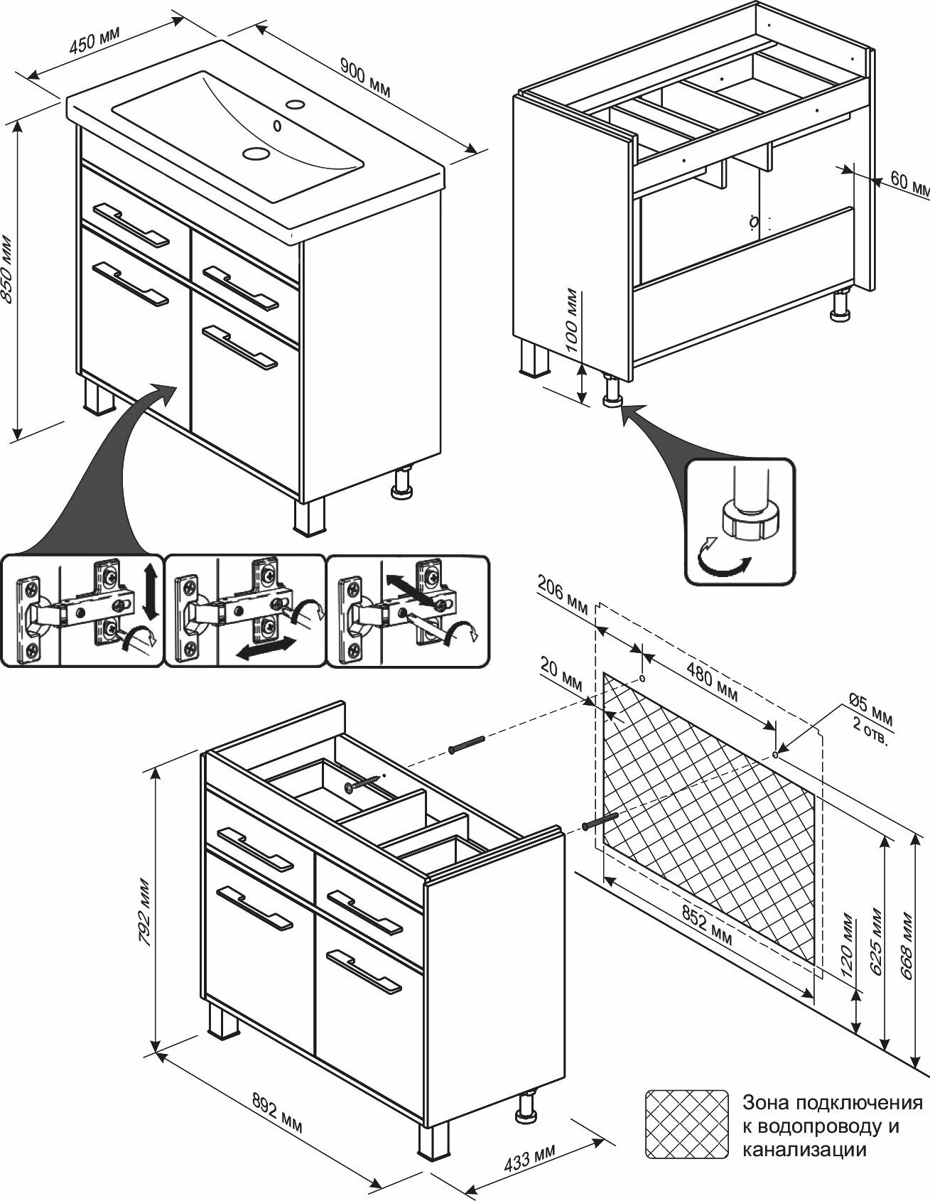 Мебель для ванной Бриклаер Чили 90 напольная интересное: