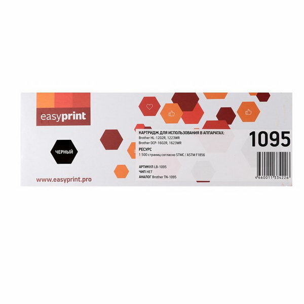 Ниже Вы можете прочитать отзывы на Картридж лазерный Easyprint LB-1095 (TN-1095) для Brother, цвет черный, ознакомится с подробными характеристиками, посмотреть интересные обзоры и фотографии на Картридж лазерный Easyprint LB-1095 (TN-1095) для Brother, цвет черный.