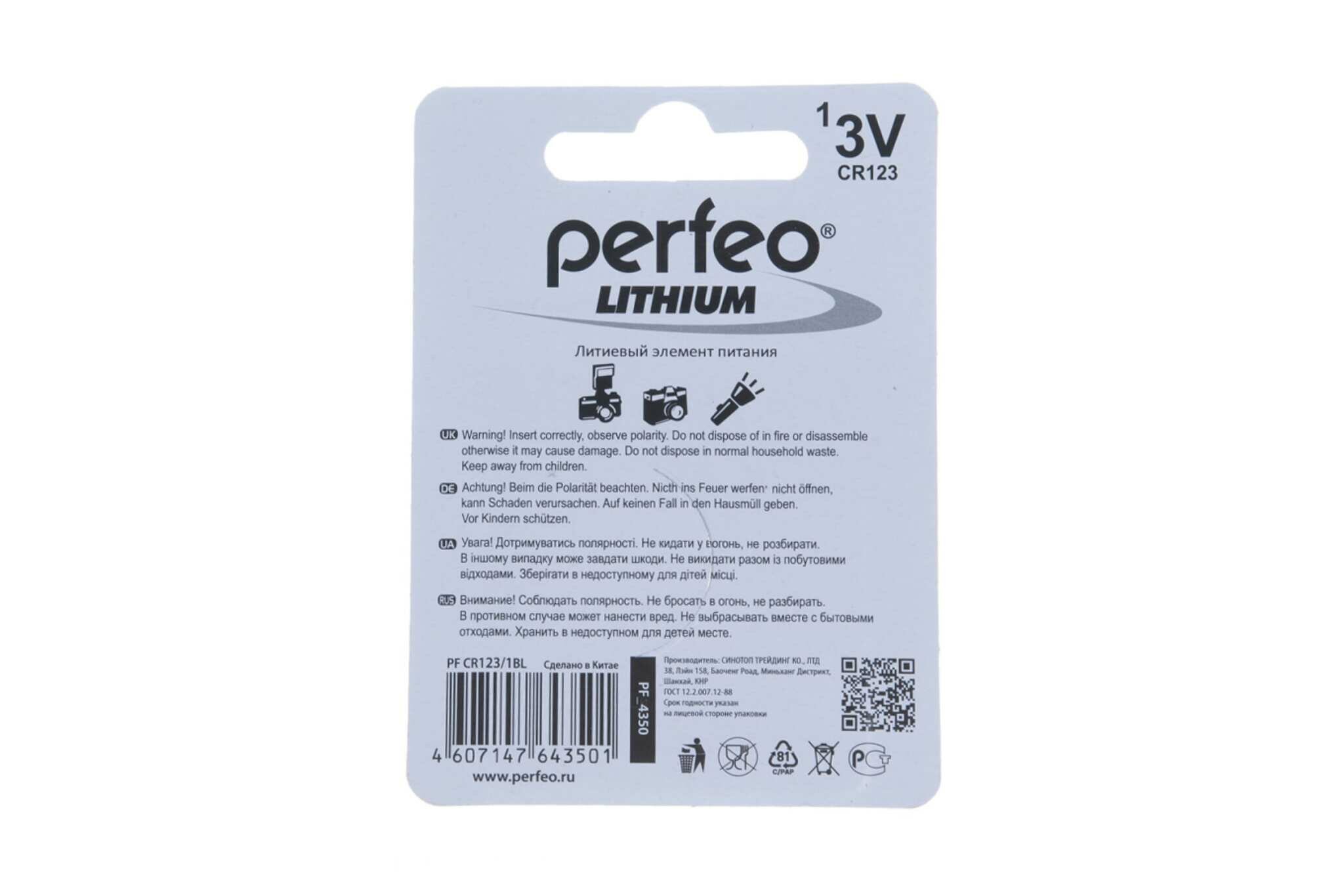 Ниже Вы можете прочитать отзывы на Батарейка Perfeo CR123 BL1 3V 6205 Lithium, ознакомится с подробными характеристиками, посмотреть интересные обзоры и фотографии на Батарейка Perfeo CR123 BL1 3V 6205 Lithium.