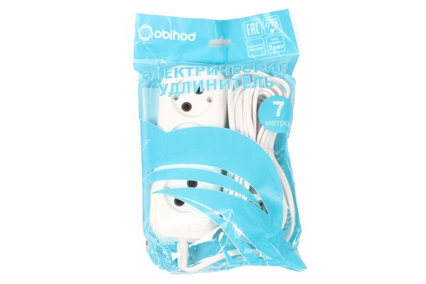 Сетевой удлинитель Obihod РС-3, ШВВП, 10 м, 3 розетки, белый цвет, 1 шт.