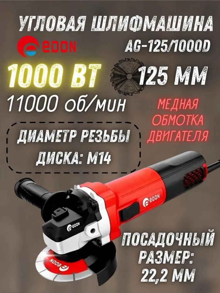 EDON 14056 EDON AG-125/1000E черный/красный 14056 Машина шлифовальная угловая