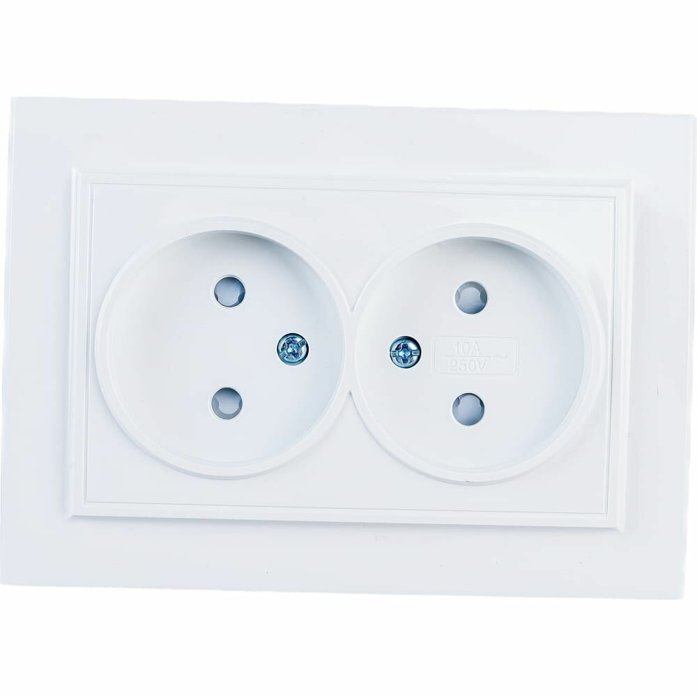 Купить Розетка 2-местная с защитной шторкой СП Минск, без заземления, 10А, белая