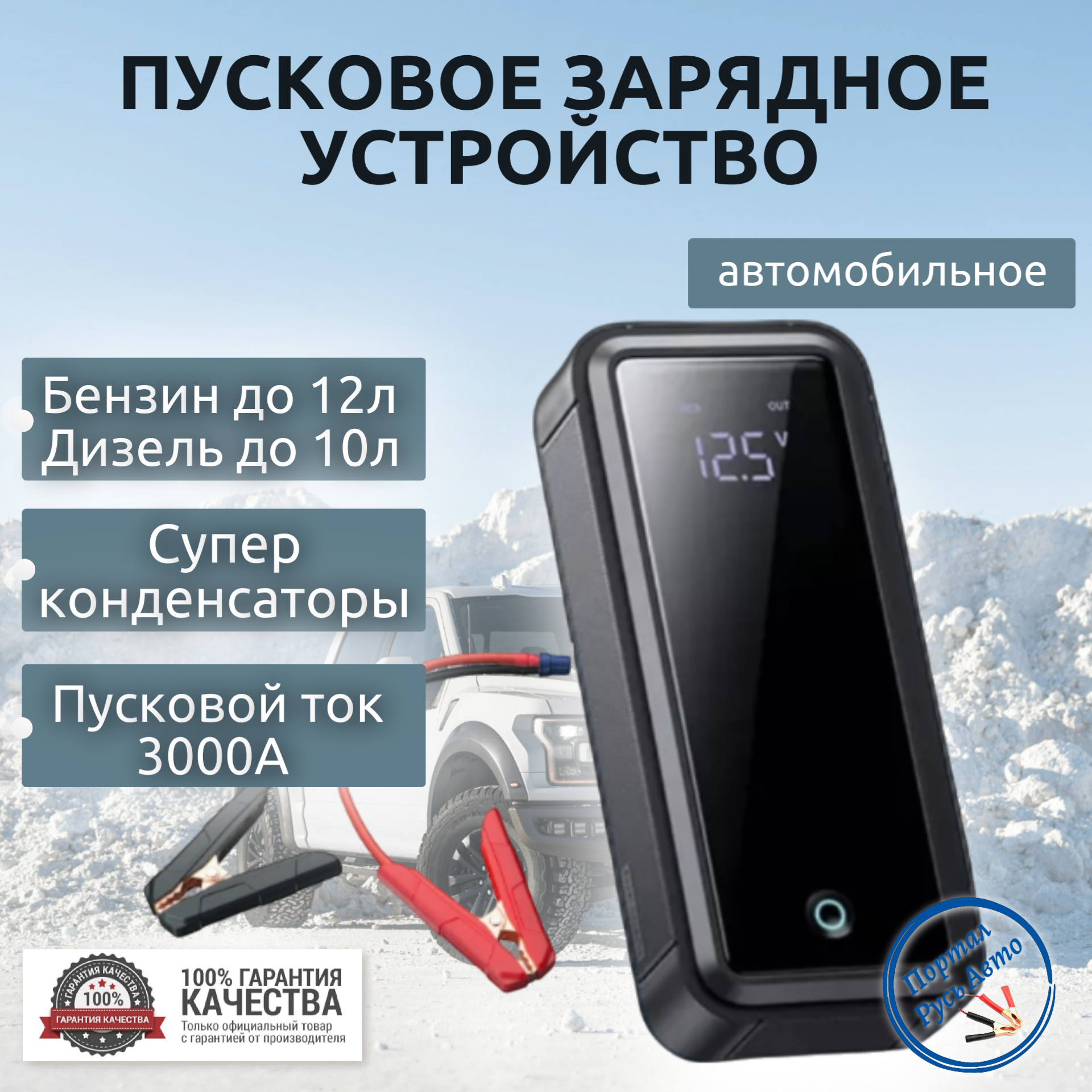 Автомобильное пусковое портативное устройство, бустер BASEUS 12000мАч 1200A.