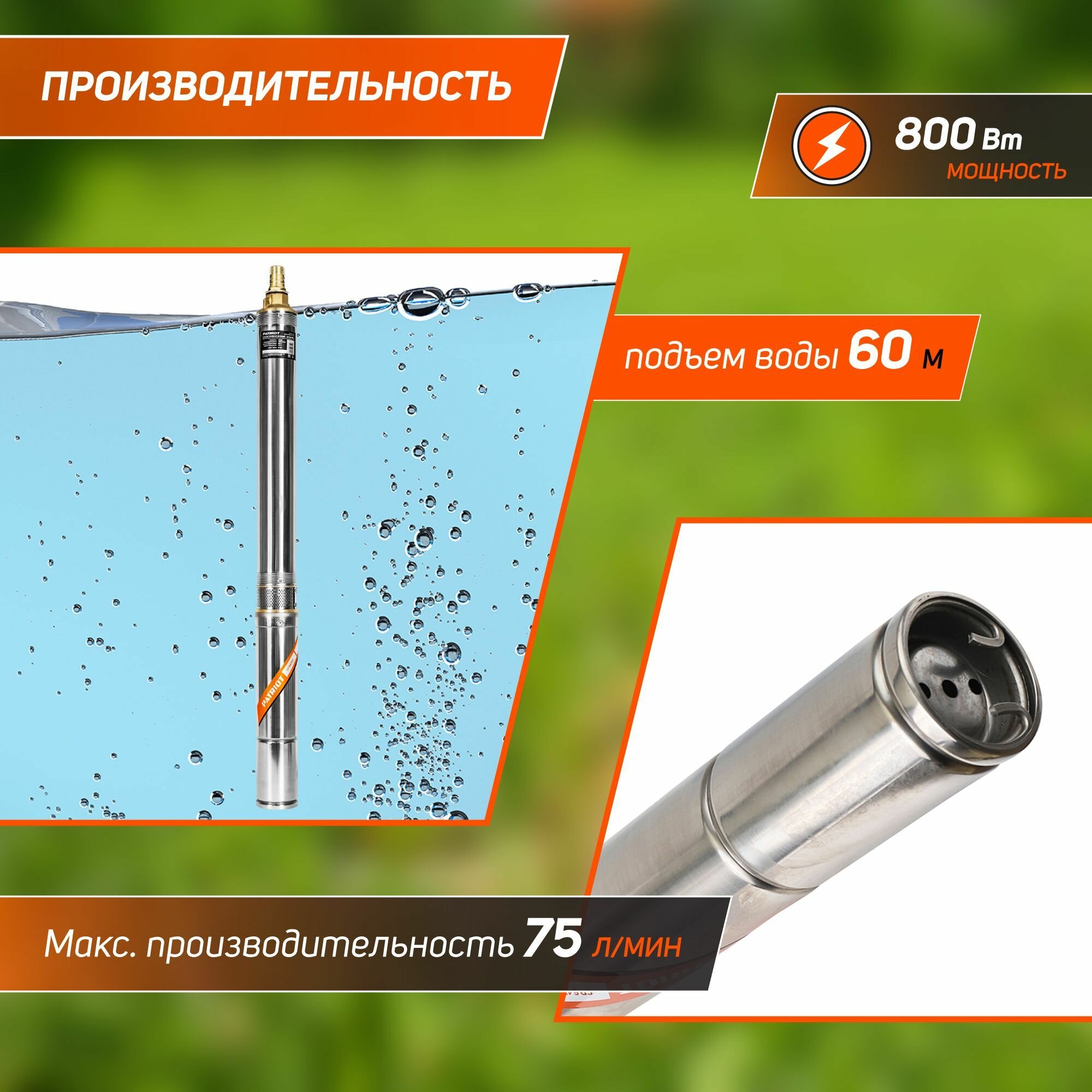Скважинный насос глубинный для колодца центробежный PATRIOT CP 6475 C, 800Вт, 4500л. час