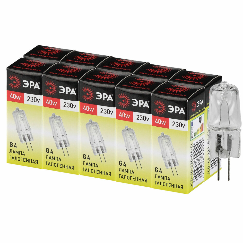 Купить Набор галогенных лампочек ЭРА G4-JCD-40W-230V-CL Капсула 40 Вт 10 штук