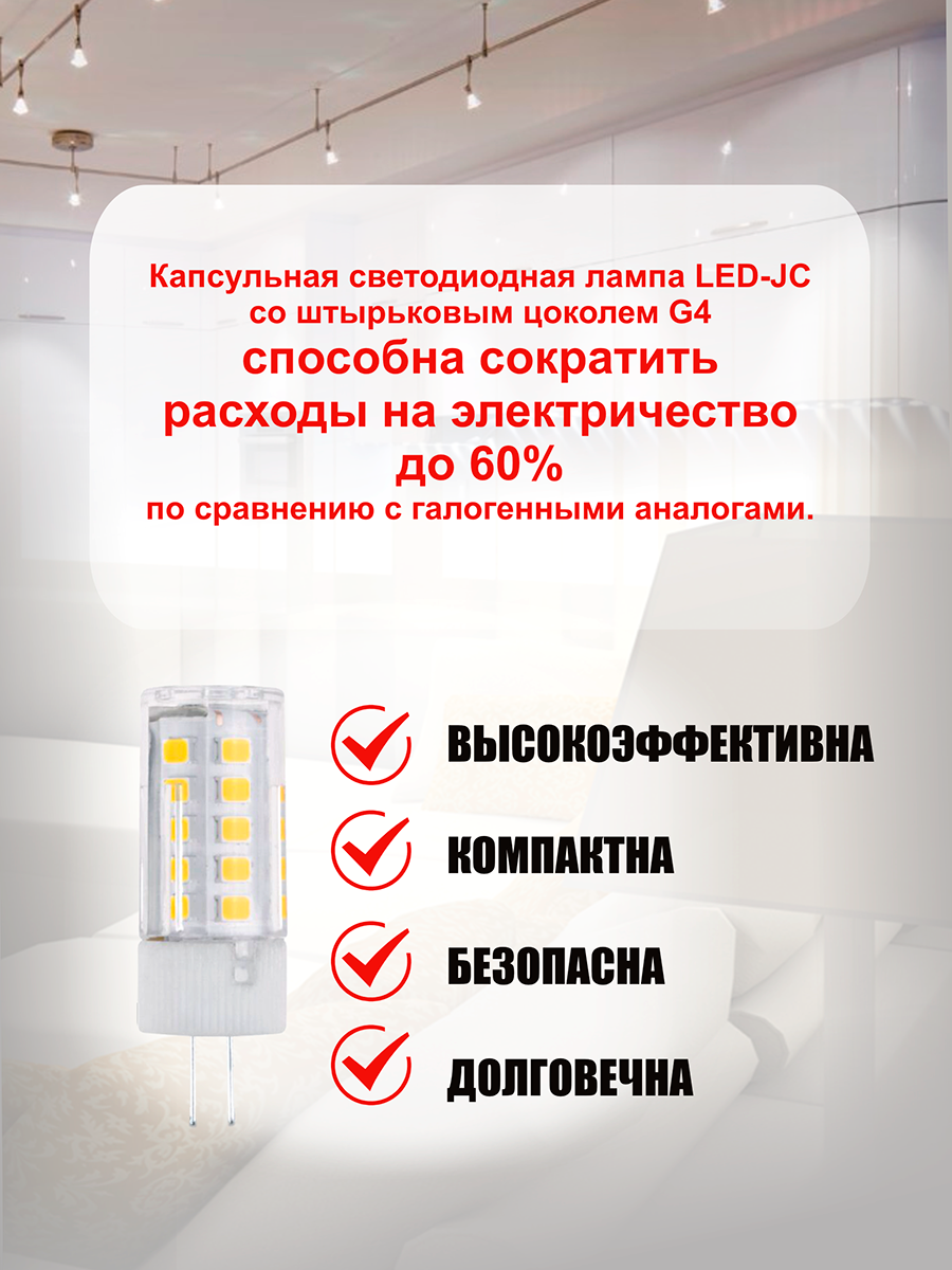 Лампа светодиодная LED-JC 5Вт 12В G4 4000К 480Лм IN HOME