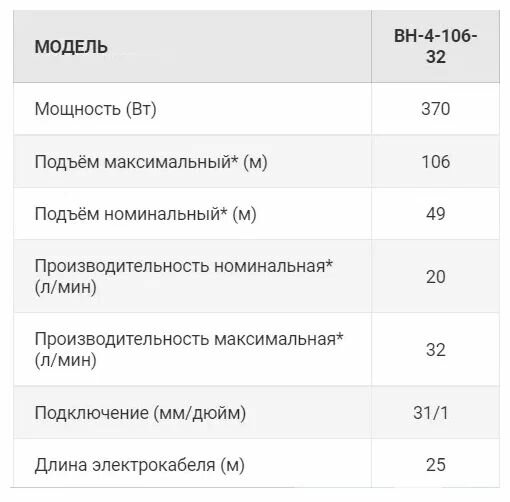 Насос скважинный, Jemix, 1 '', 25 м, 370 Вт, глубина погружения 35 м, максимальный напор 106 м, 1.2 м3/час, ВН-4-106-32 (4-QGB-1-57M)