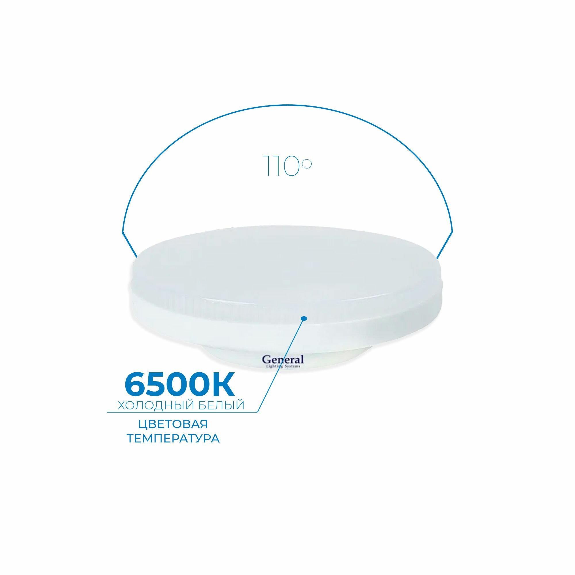 10 шт. Светодиодная лампочка General Шайба 12Вт GX53 6500K 170-260В