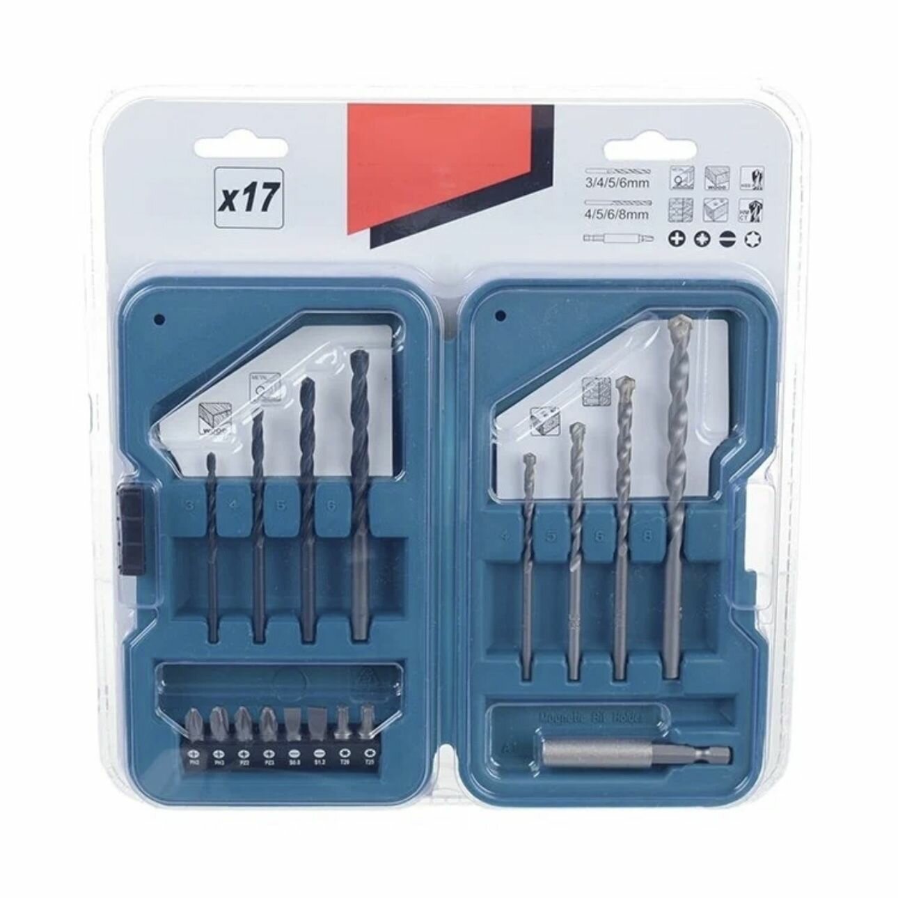 Набор MAKITA D-40200 17шт, сверла д\дер,мет,биты Рh\Pz\Торх\SL,магн.держатель,Square