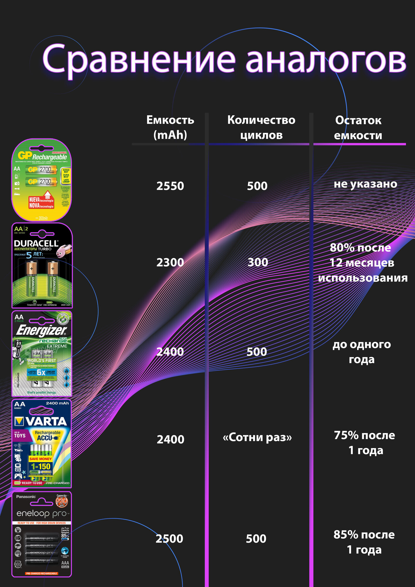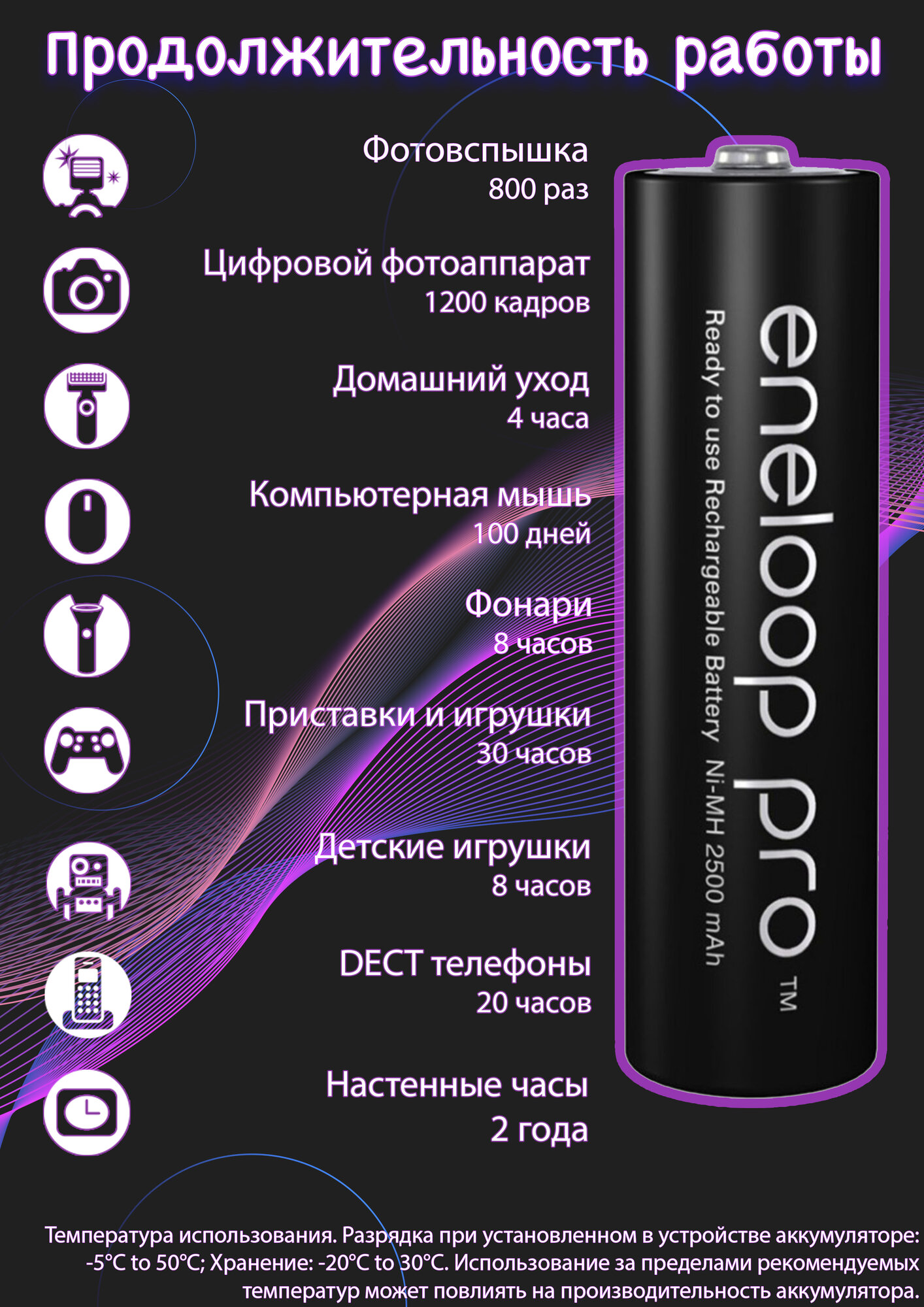 99011259464 Аккумулятор Panasonic Eneloop Pro BK-3HCDEC4BE 2500 мА*ч интересное: