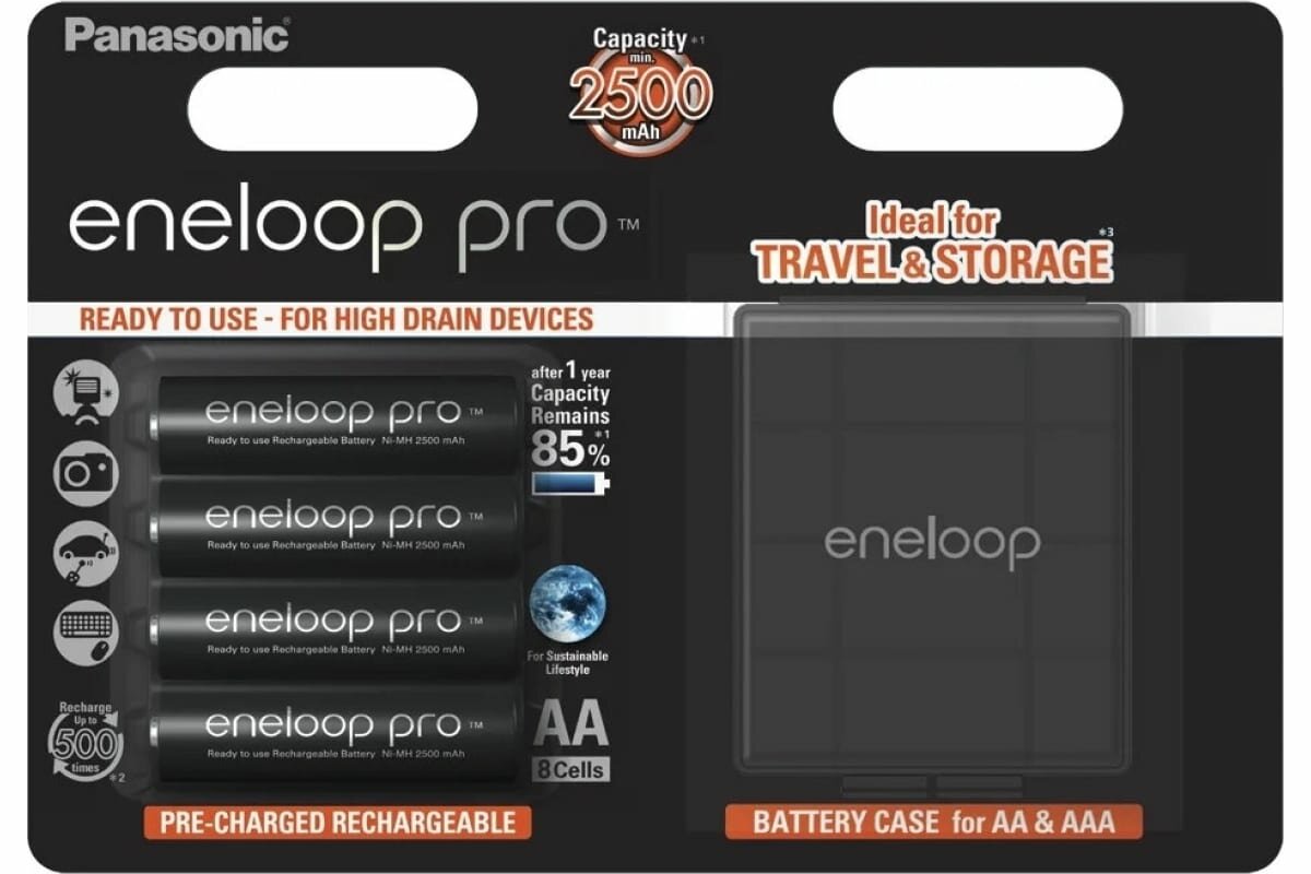 Аккумулятор АА Eneloop Panasonic PRO BK-3HCDEC4BE HR6-4BL 2500мА/ч в блистере 4шт. + пластиковый футляр для хранения