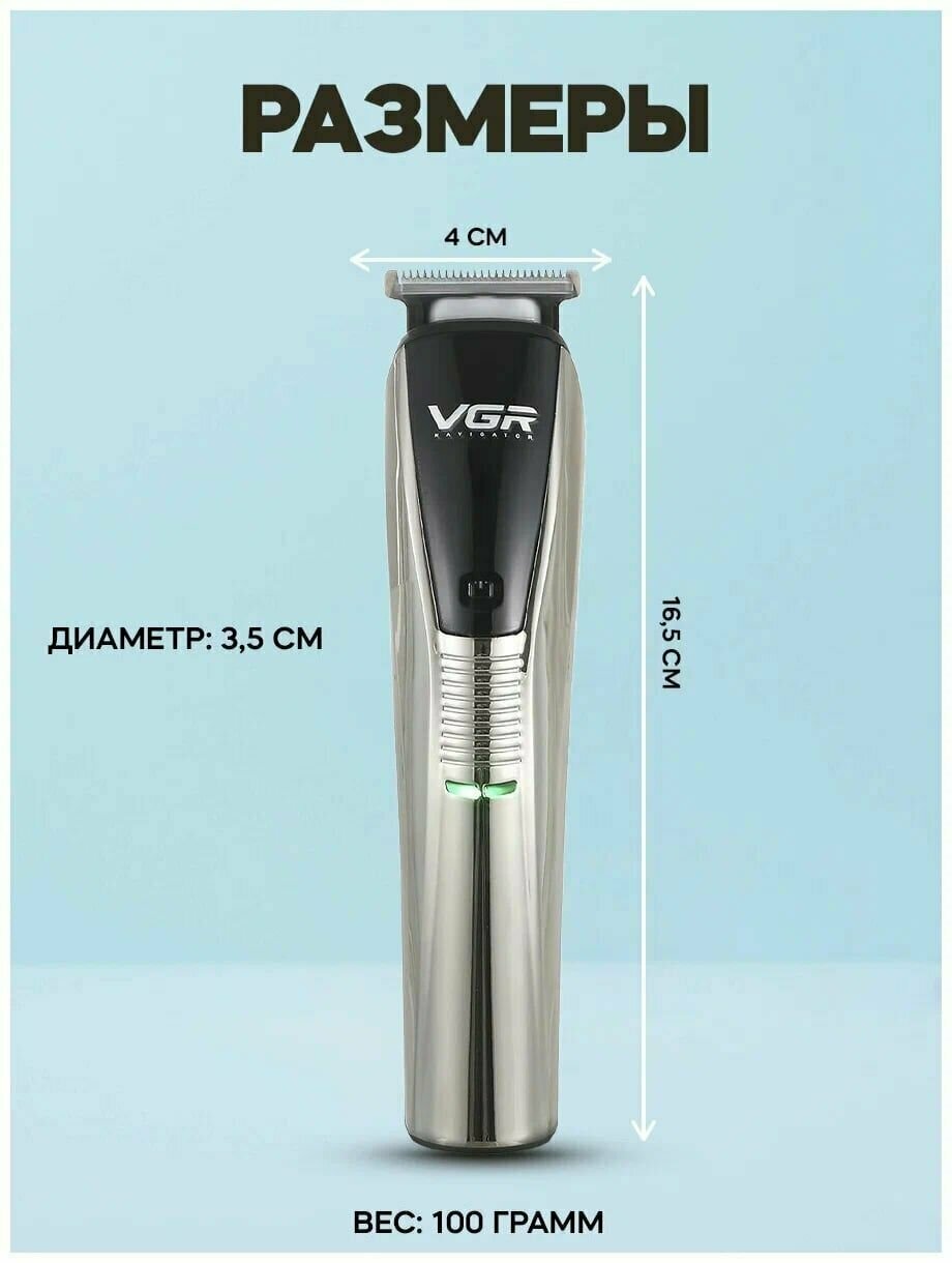 Машинка для стрижки волос и бороды Триммер беспроводной VGR V-029, черная