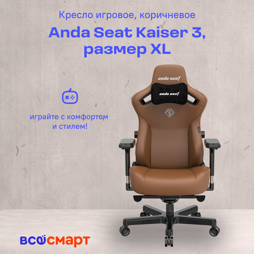СохранитьКресло игровое Anda Seat Kaiser 3, цвет коричневый, размер XL (180кг), материал ПВХ (модель Ad12) . интересное: