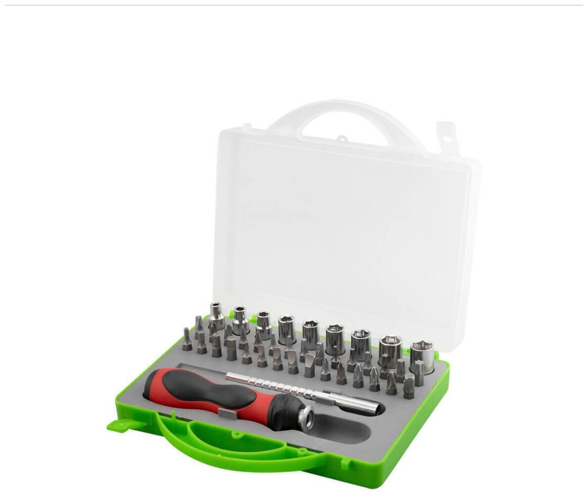 Набор бит и торцевых головок с рукояткой и переходником, 41 предмет