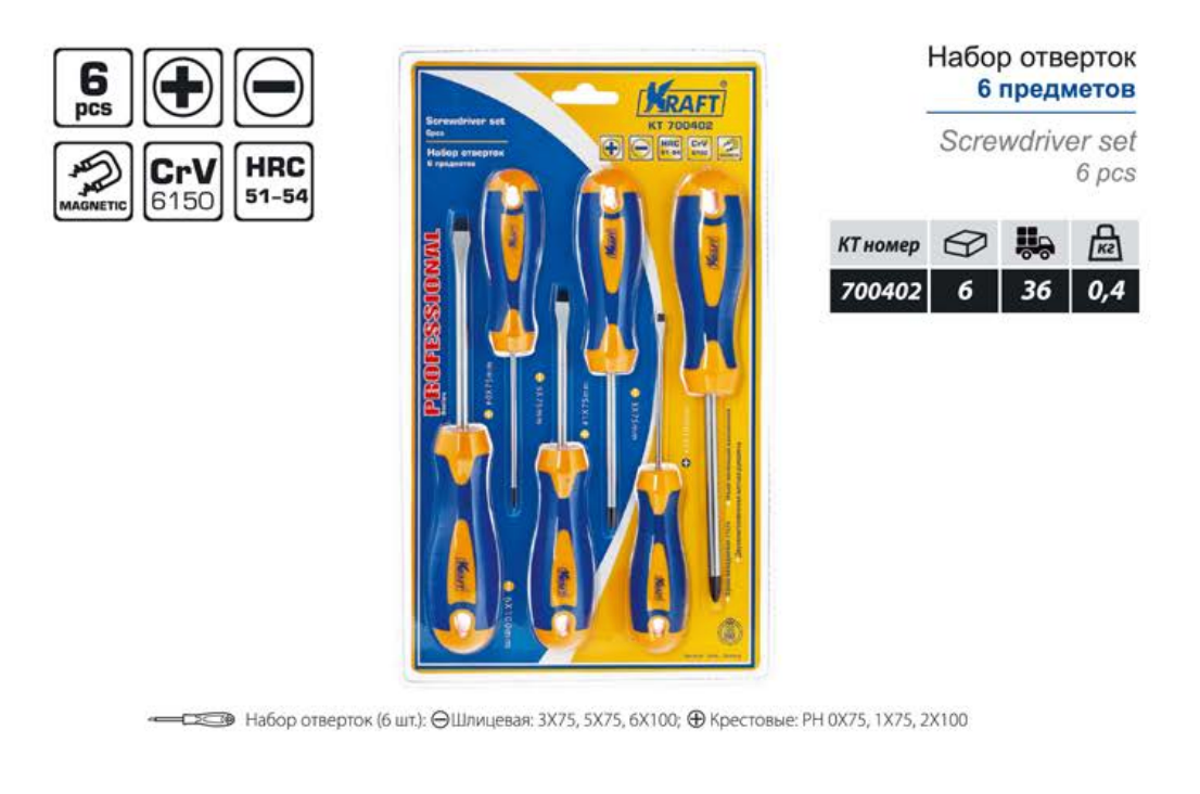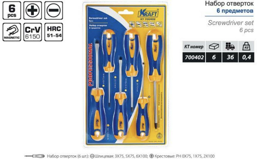 Набор отверток 6 предметов, KRAFT KT700402 (1 шт.)