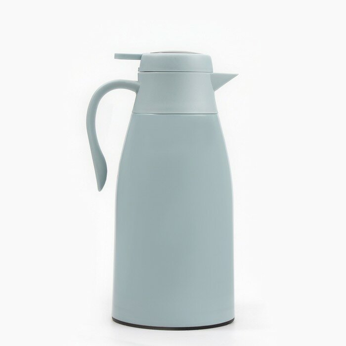 Купить Термокувшин, 1.5 л, сохраняет тепло 24 ч, с термометром, стеклянная колба, голубой