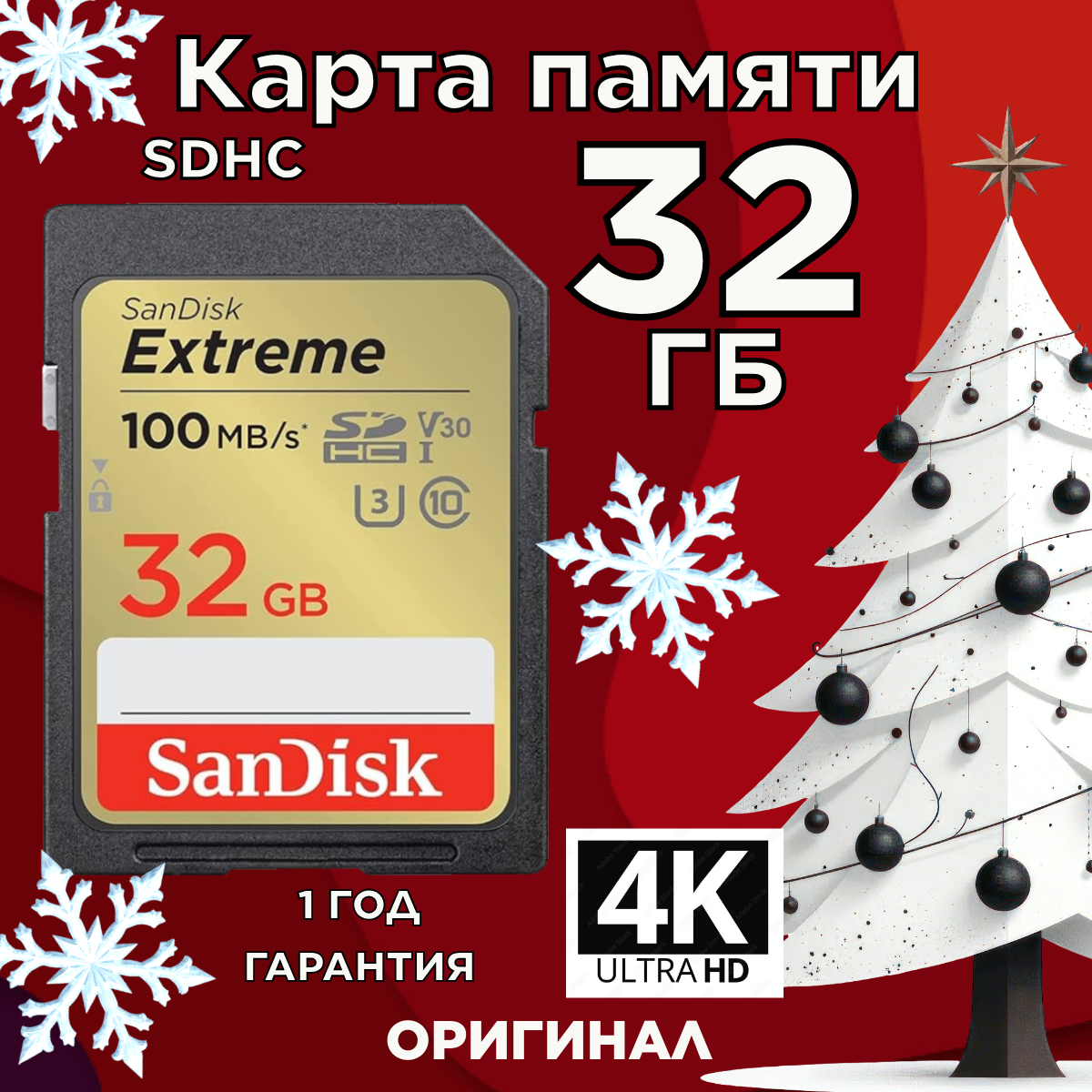 Карта памяти SD 128 ГБ SanDisk Class 10 Extreme