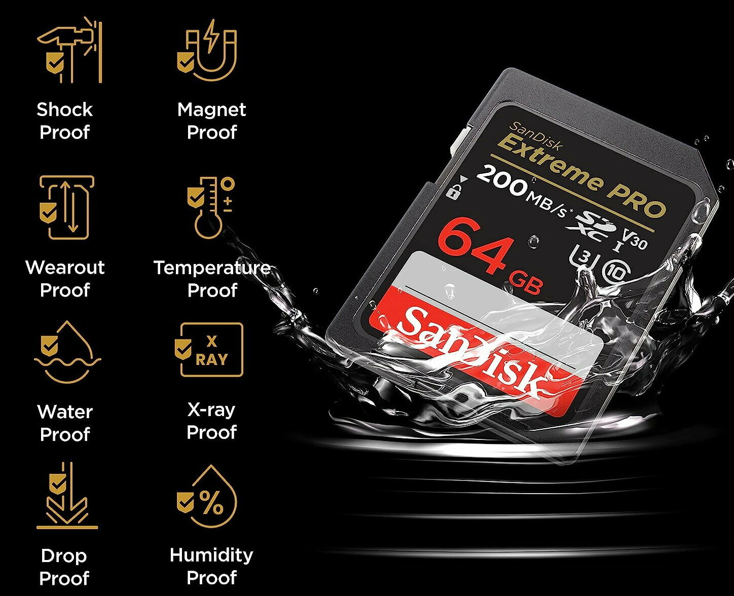 Карта памяти SanDisk SDXC Extreme Pro Class 10 UHS-I V30 U3 (200/90MB/s) 64GB