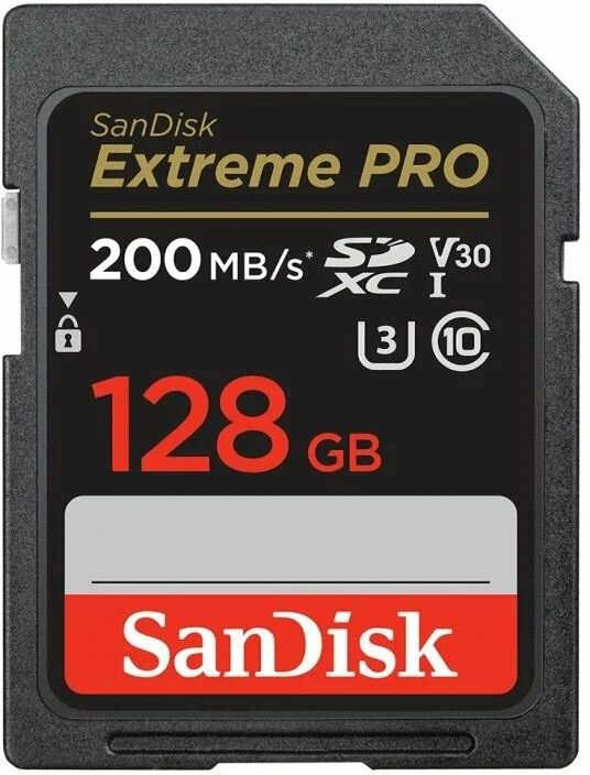 Карта памяти SanDisk Extreme PRO SDXC 128 ГБ Class 10 UHS-I U3 V30 (R/W 200/90 Mb/s)