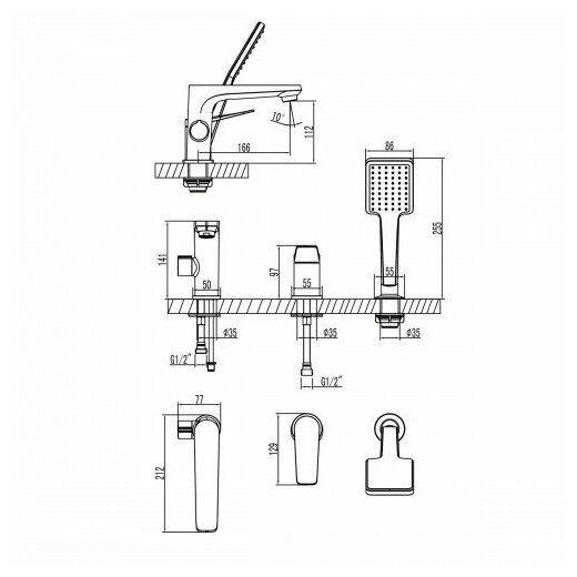 | Дополнительная информация | диаметр душевой лейки: 66 мм; диаметр верхнего душа: 303 мм |