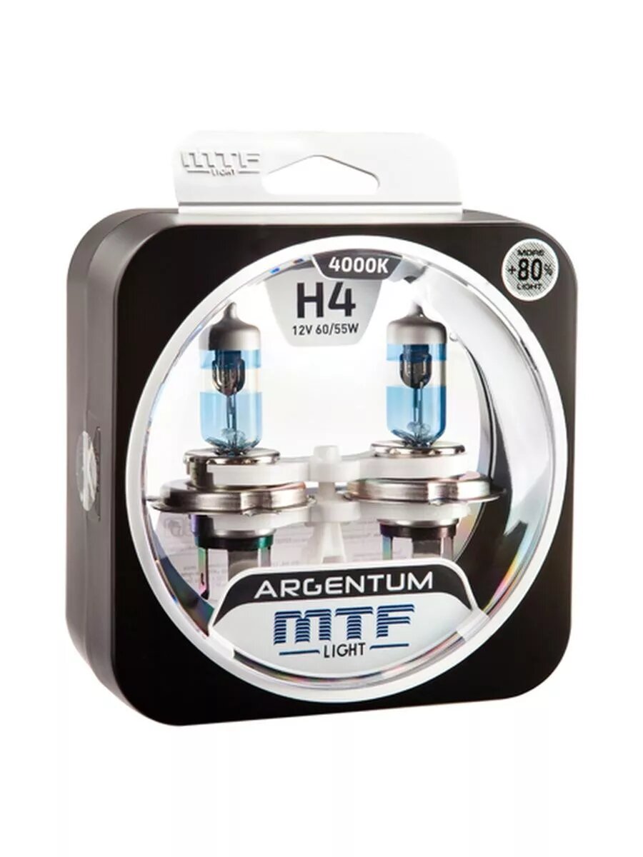 Галогеновые лампы MTF light ARGENTUM +80% 4000K H4 (2 лампы)