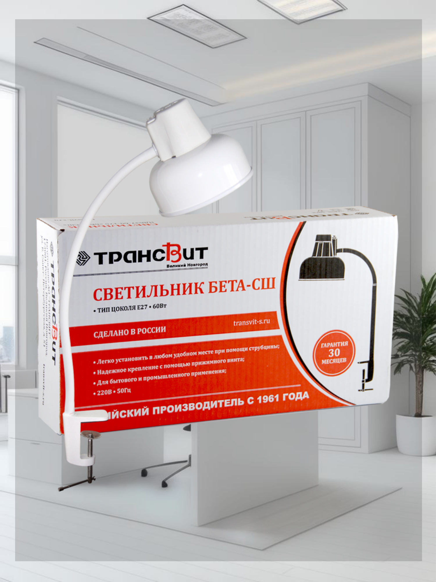Купить Лампа настольная Бета-СШ на струбцине, 60Вт, 220В, Е27, белый, Трансвит