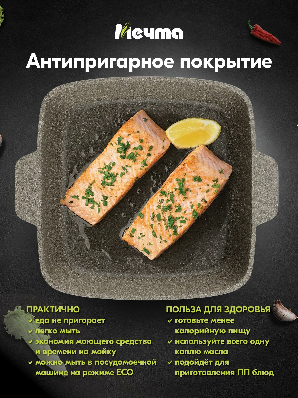 Жаровня квадратная Мечта 26*26см Премиум с антипригарным покрытием с крышкой 38901