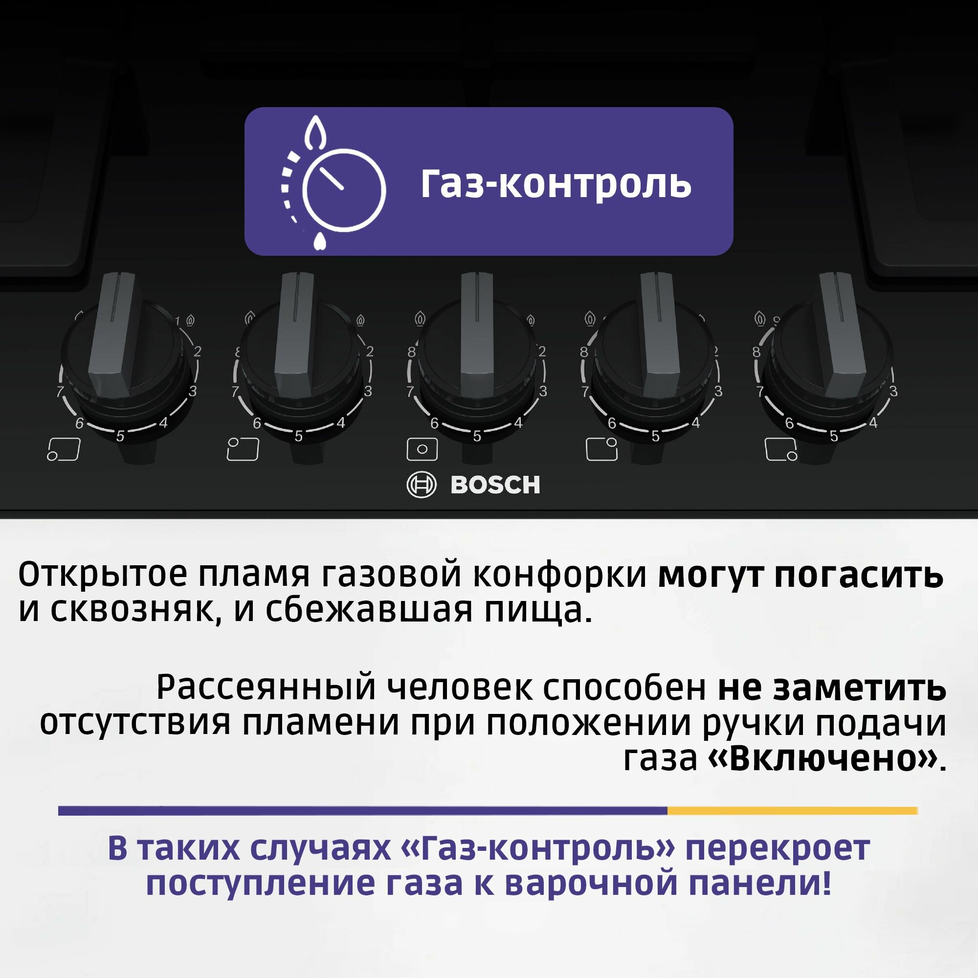 Газовая варочная панель Bosch PPQ7A6B20, черный