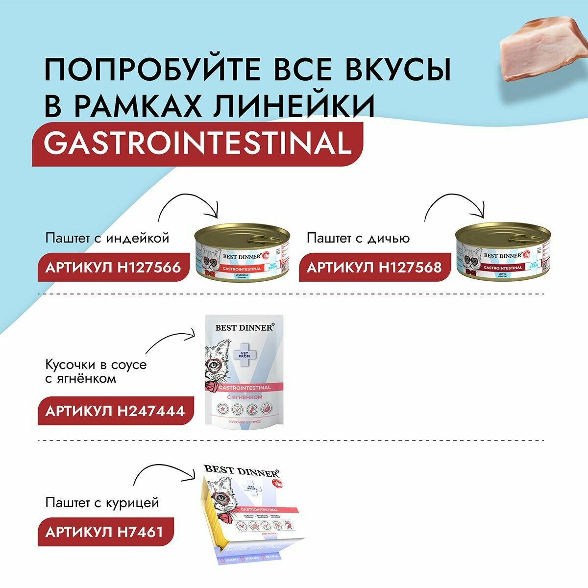 | Особые потребности | беззерновой / гипоаллергенный / при чувствительном пищеварении |
