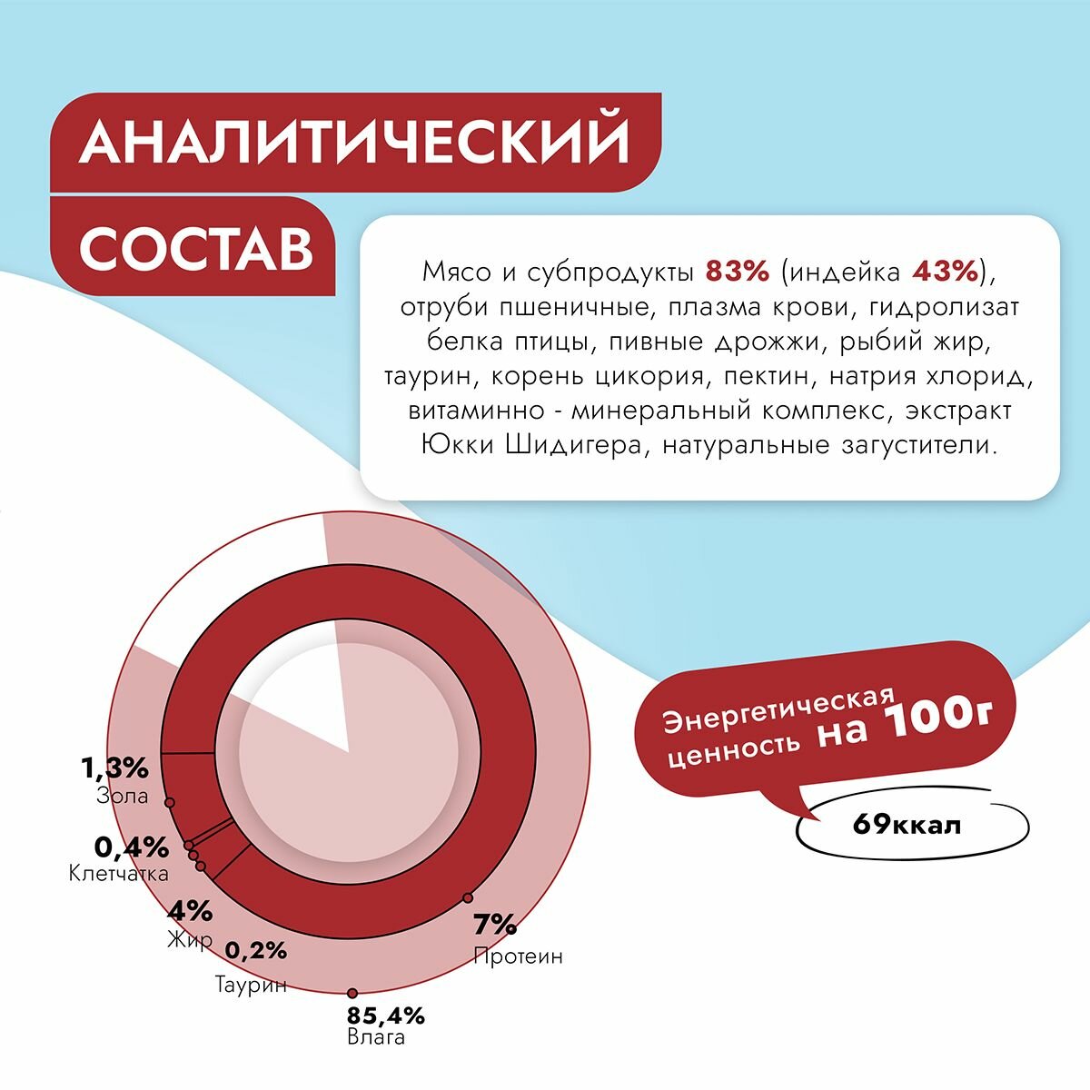 | Состав | говядина, таурин, желирующая добавка, соль, вода питьевая |